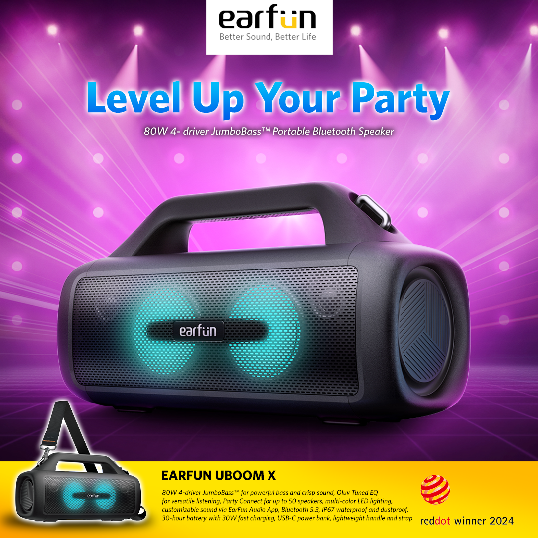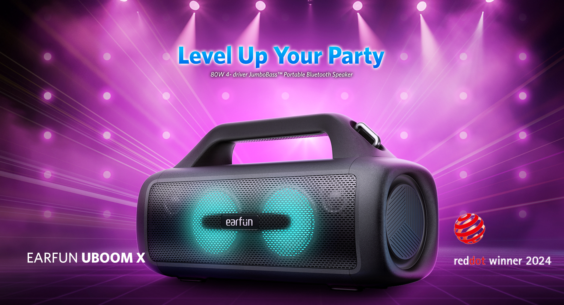 Pelajari Lebih Lanjut"Speaker Bluetooth EarFun UBOOM X memberikan kesan yang sangat kokoh dengan pegangan bawaan yang kuat dan desain yang jelas serta elegan."