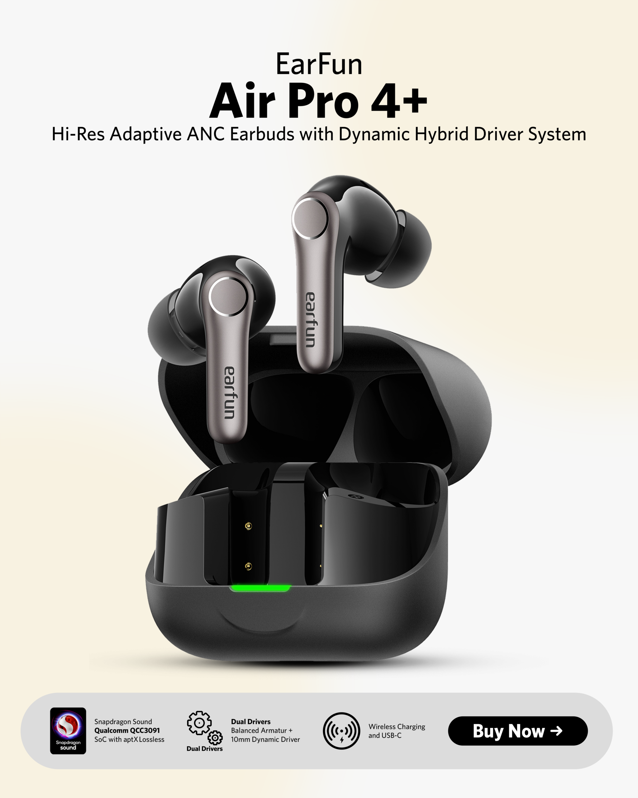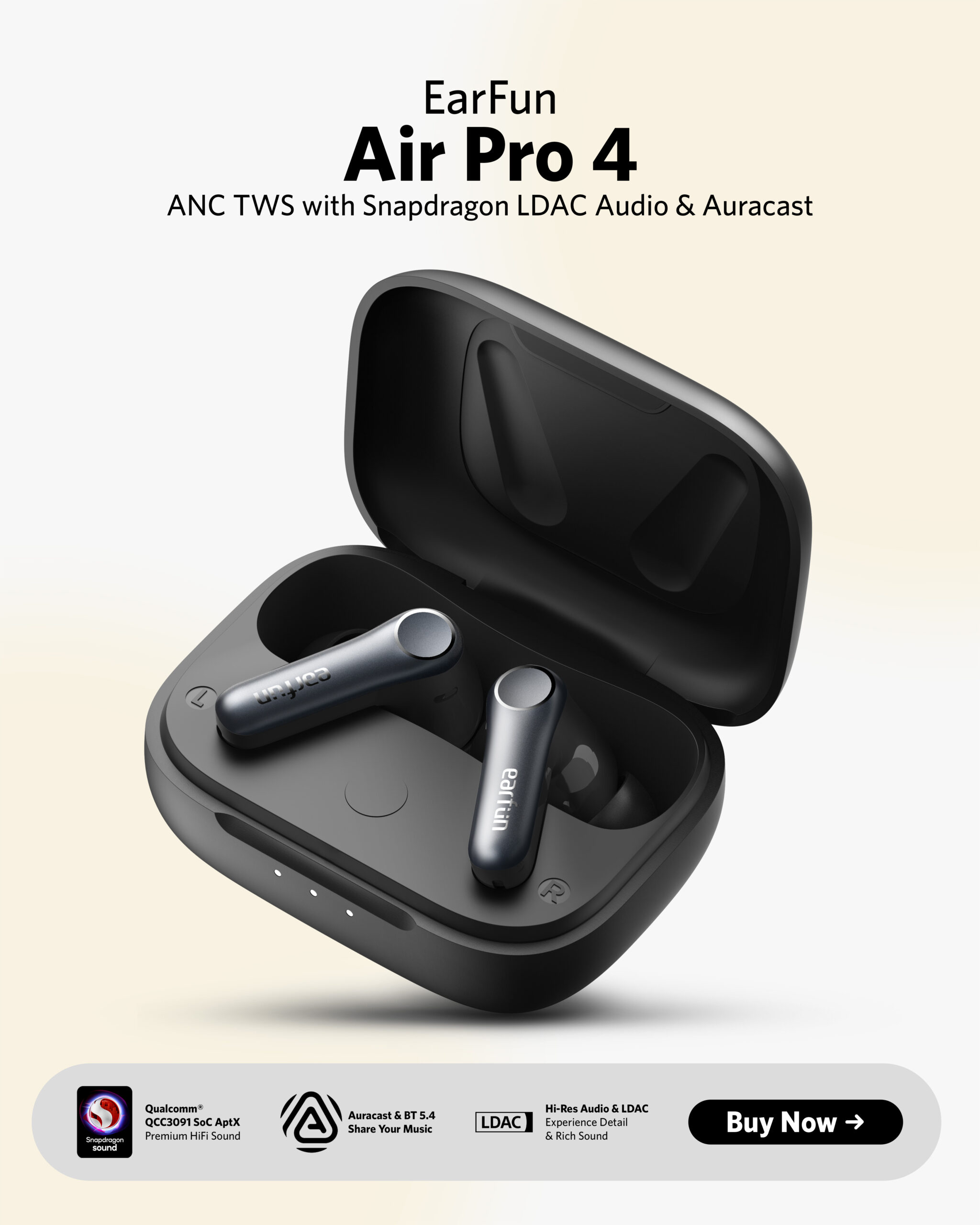 Pelajari Lebih Lanjut"EarFun menambahkan pencapaian baru dalam lini true wireless-nya dengan Air Pro 4. Pembatalan kebisingan yang lebih kuat, kualitas audio yang lebih baik, daya tahan baterai yang lebih lama, dan konektivitas yang lebih canggih menjadikan earbud ini peningkatan yang signifikan dibandingkan pendahulunya. Spesifikasi yang diperbarui, terutama aptX Adaptive dan LDAC, akan memikat Anda."