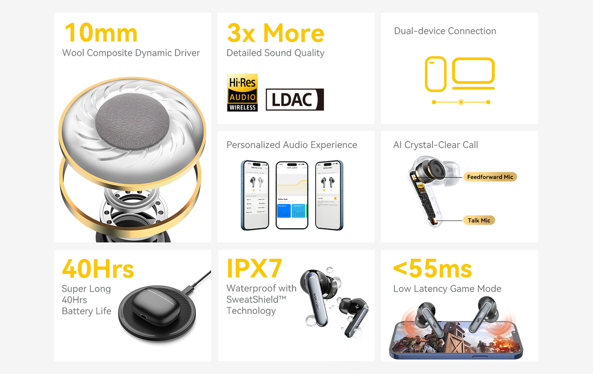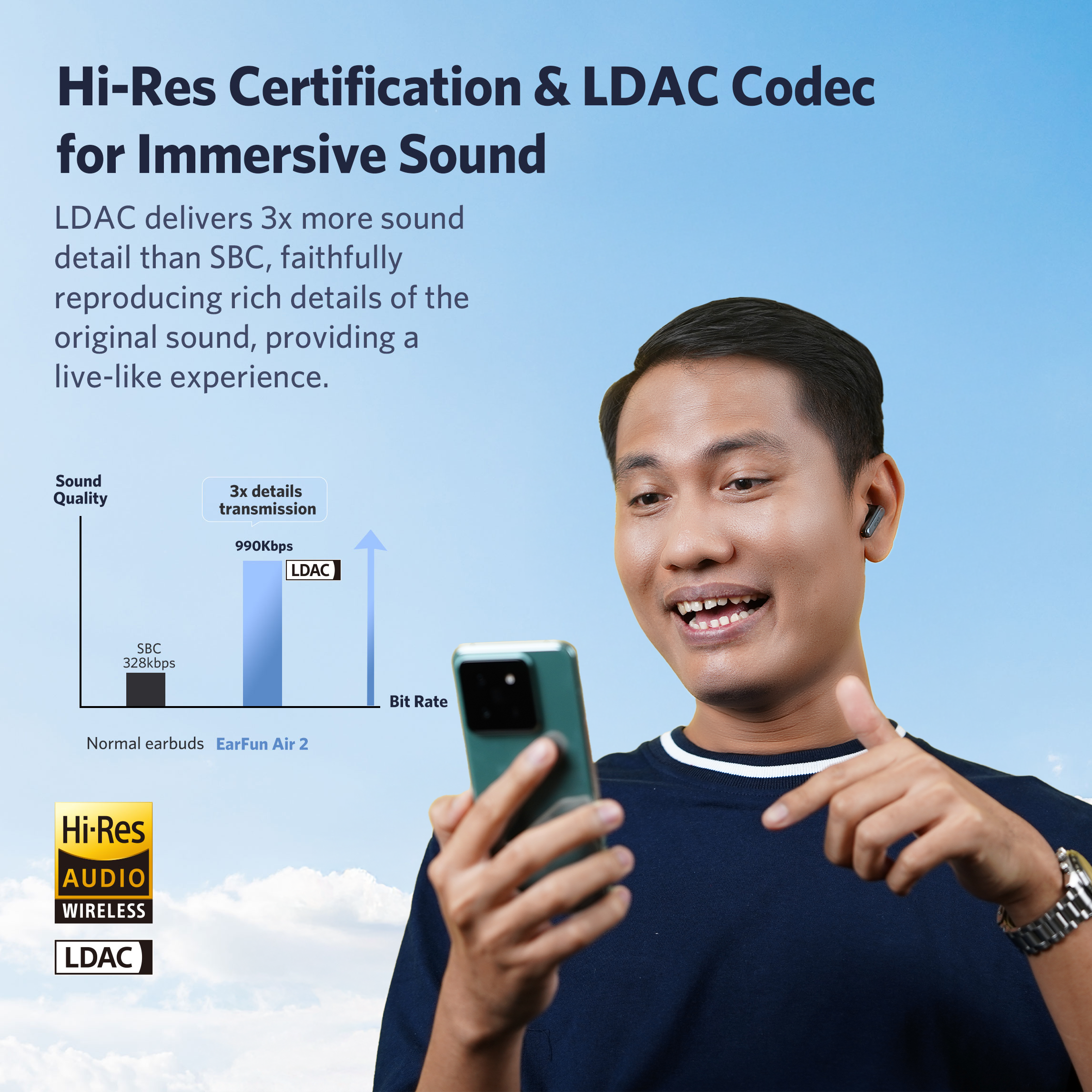 1. LDAC hanya didukung pada sistem ponsel Android 8.0 atau lebih tinggi dan tidak kompatibel dengan perangkat iOS.