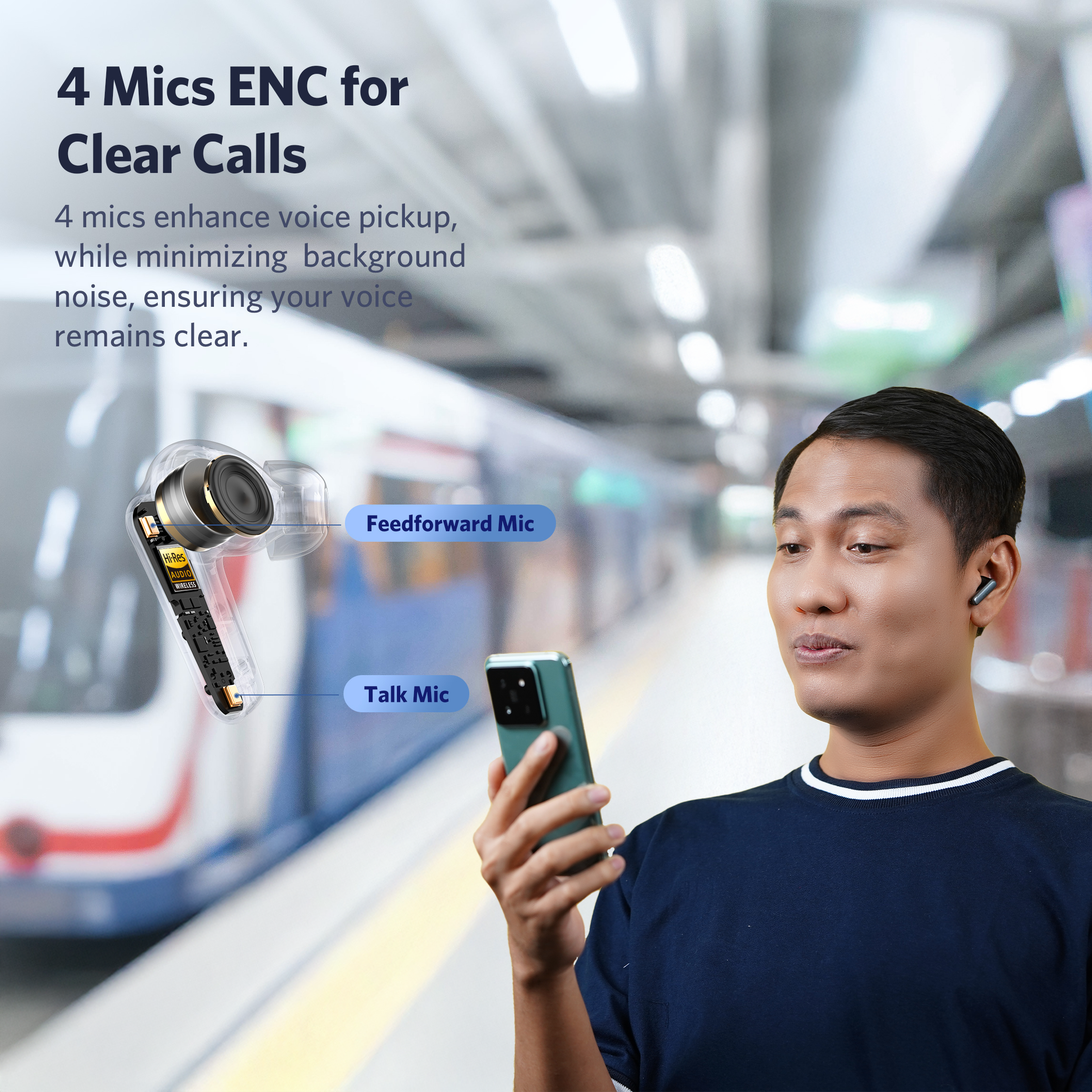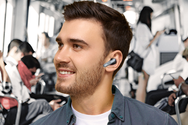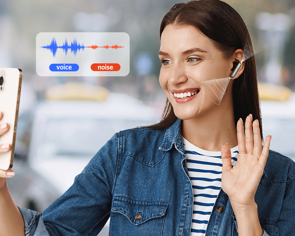 Harap sesuaikan posisi earbuds untuk memastikan mikrofon suara mengarah ke sumber suara Anda. Pastikan perangkat Bluetooth menggunakan mikrofon earbuds untuk panggilan.