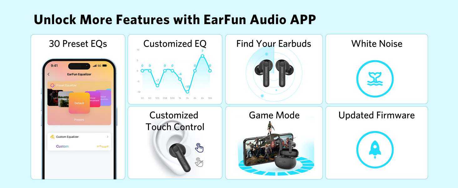 Kami menyarankan untuk menyesuaikan pengaturan audio sesuai preferensi Anda melalui pengaturan EQ di aplikasi EarFun Audio.