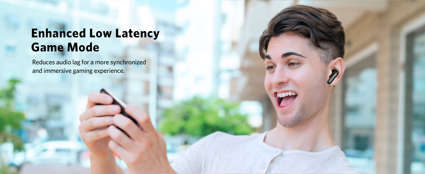 Harap periksa apakah ada benda yang menghalangi antara earbuds dan perangkat Bluetooth, serta hindari potensi gangguan sinyal radio atau Wi-Fi. Meskipun earbuds memiliki jangkauan maksimal 49 kaki (15 meter) tanpa hambatan, jangkauan sebenarnya dapat bervariasi tergantung pada penggunaan dan lingkungan.
