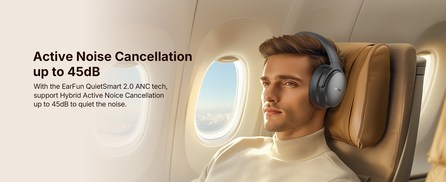 • Outstanding Hybrid ANC up to 45dB & AUX wired input with single-feed forward ANC