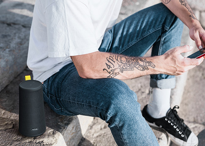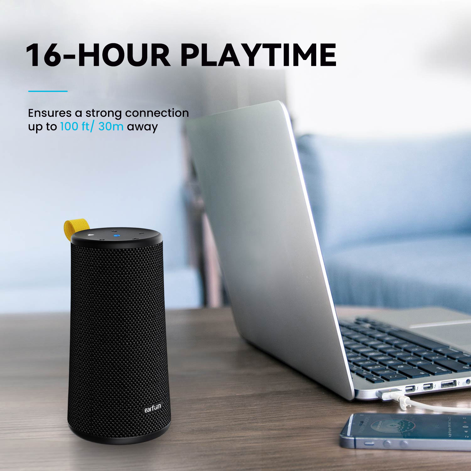 Waktu pemutaran bervariasi tergantung pada tingkat volume dan konten audio. Pada volume 50%, speaker dapat digunakan hingga 16 jam.