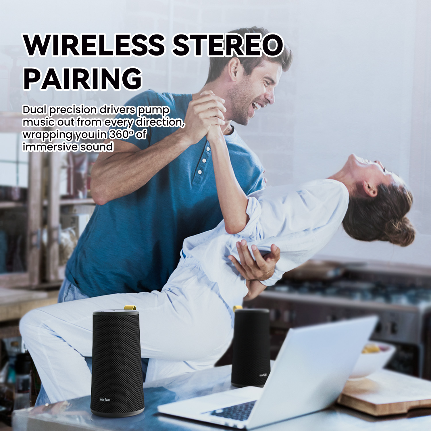 Langkah 2: Tekan tombol Bluetooth pada kedua speaker bersamaan selama setidaknya 5 detik hingga terdengar suara notifikasi yang menandakan bahwa keduanya telah berhasil dipasangkan. (Speaker utama akan berkedip biru lagi, sementara yang lain menjadi speaker sekunder).