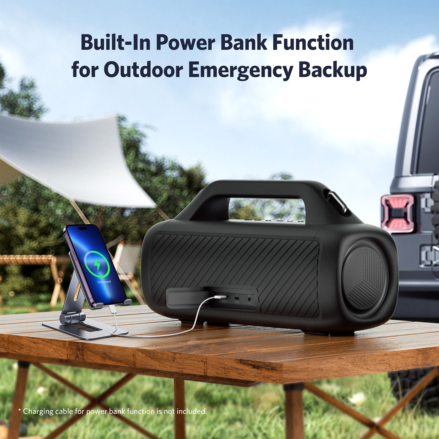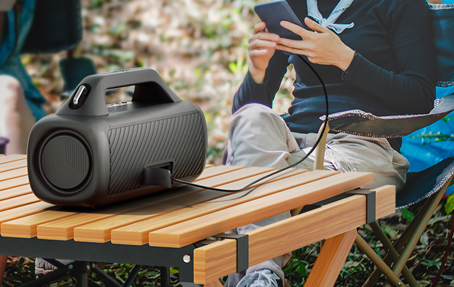 Gunakan UBOOM X untuk mengisi daya perangkat lain, memastikan baterai tetap terisi saat bepergian.