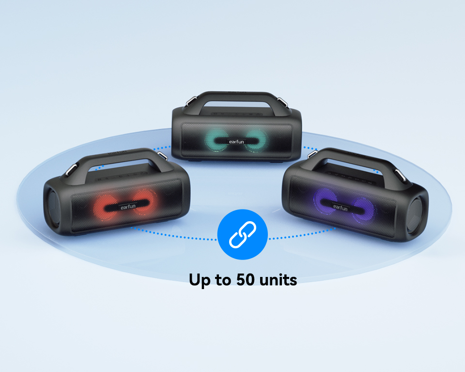 Hubungkan hingga 50 speaker yang kompatibel untuk menyinkronkan musik dan pencahayaan melalui Party Mode. Hadirkan suara bertenaga dan ciptakan atmosfer pesta terbaik di mana saja!